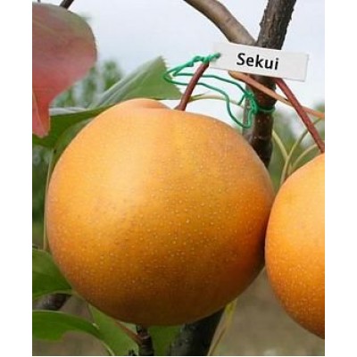 Отличным вариантом колоновидной груши для дизайна участка станет сорт “Секуи”. Он отличается необычной, для наших широт, формой плода и красивыми, декоративными листьями.